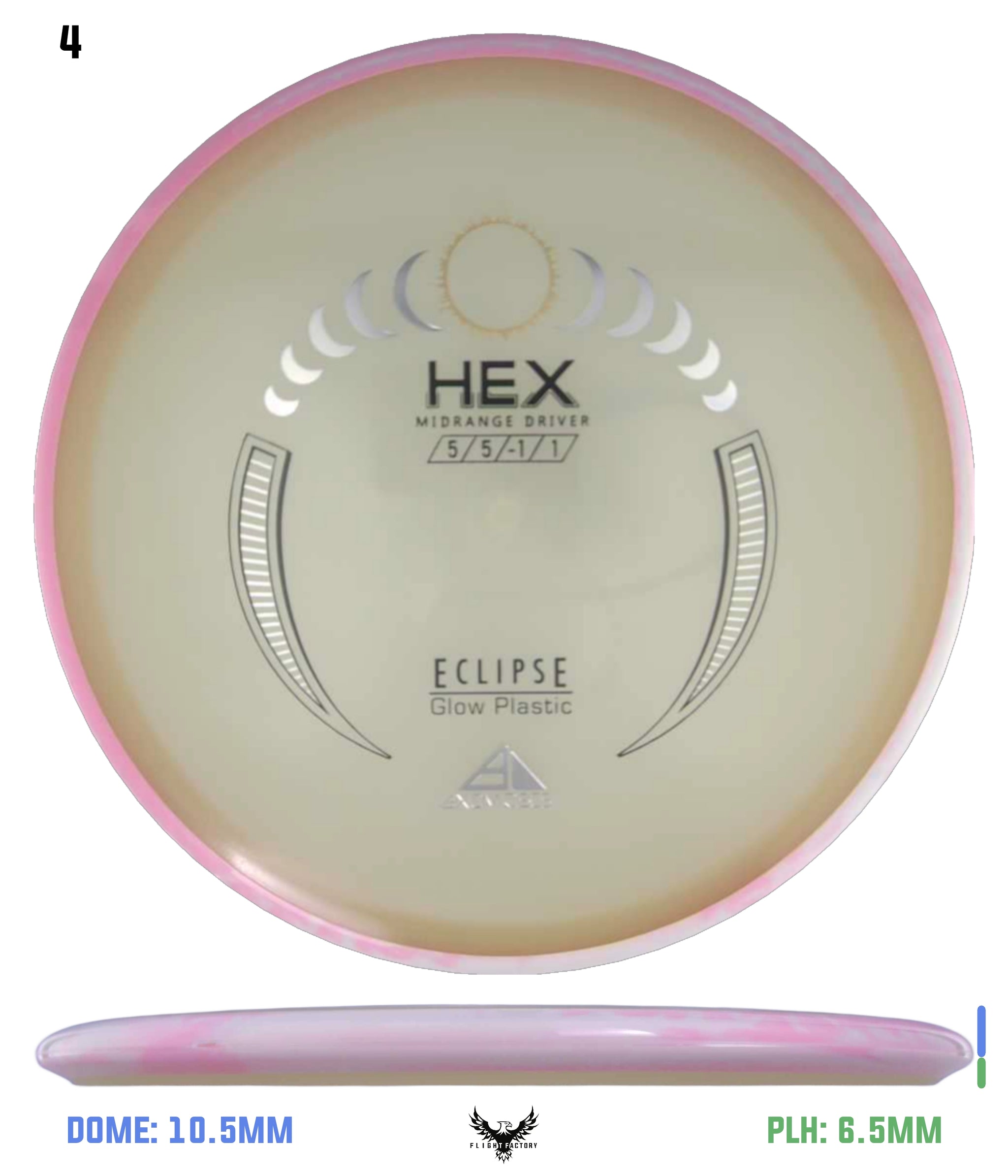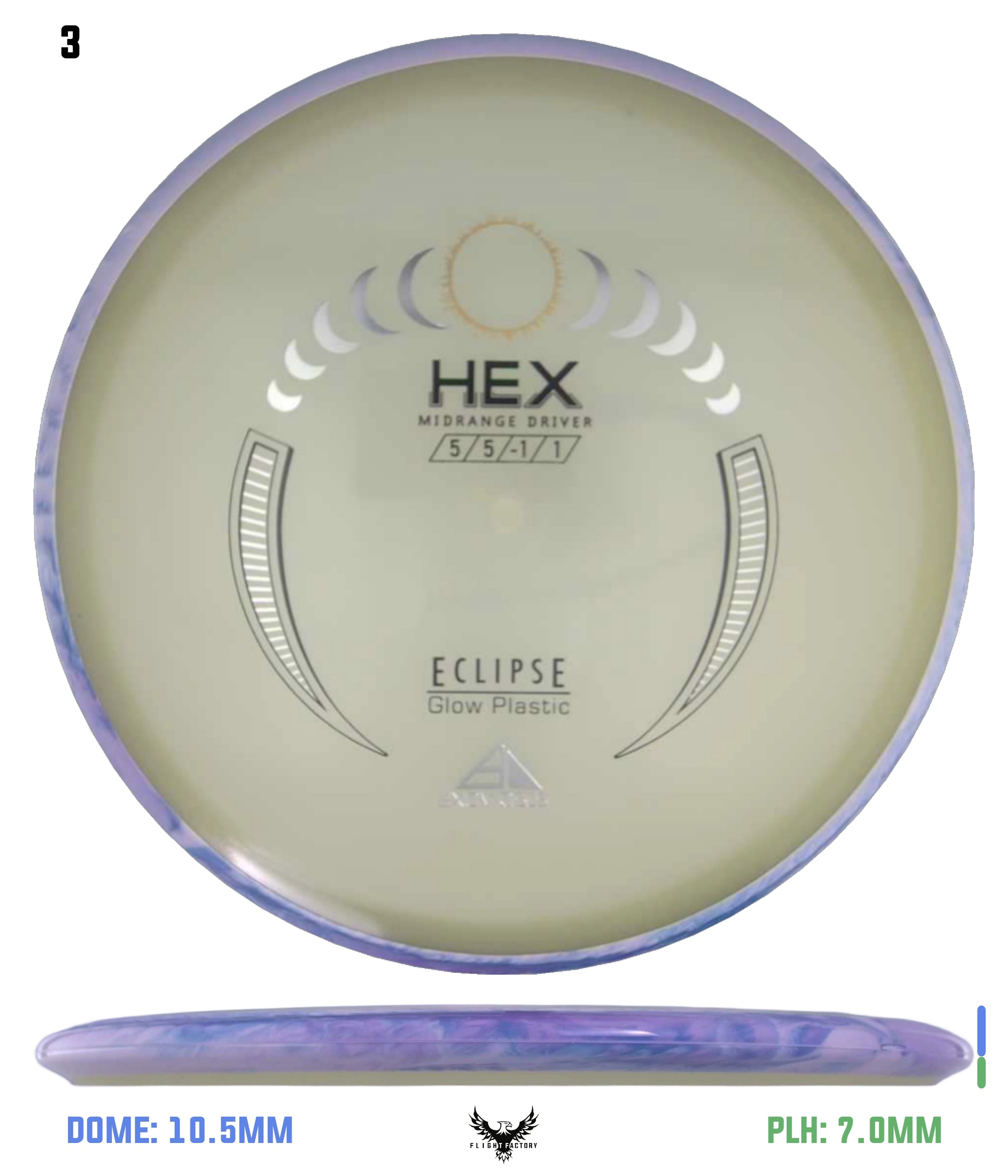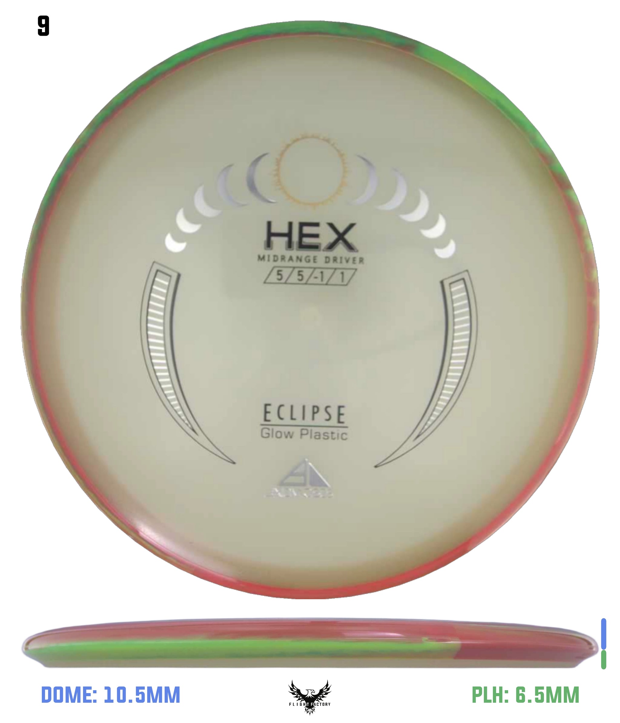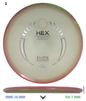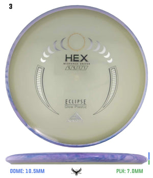 The most popular Axiom midrange disc is receiving its stock release in Eclipse plastic, the best glow plastic on the market! A laser straight flier able to handle power and torque without turning over, consistency is the name of the game here. Plus, with the slightly gummy Eclipse plastic, you’ll have a confident grip day or night! Give your game a glow up with the Axiom Eclipse Hex!