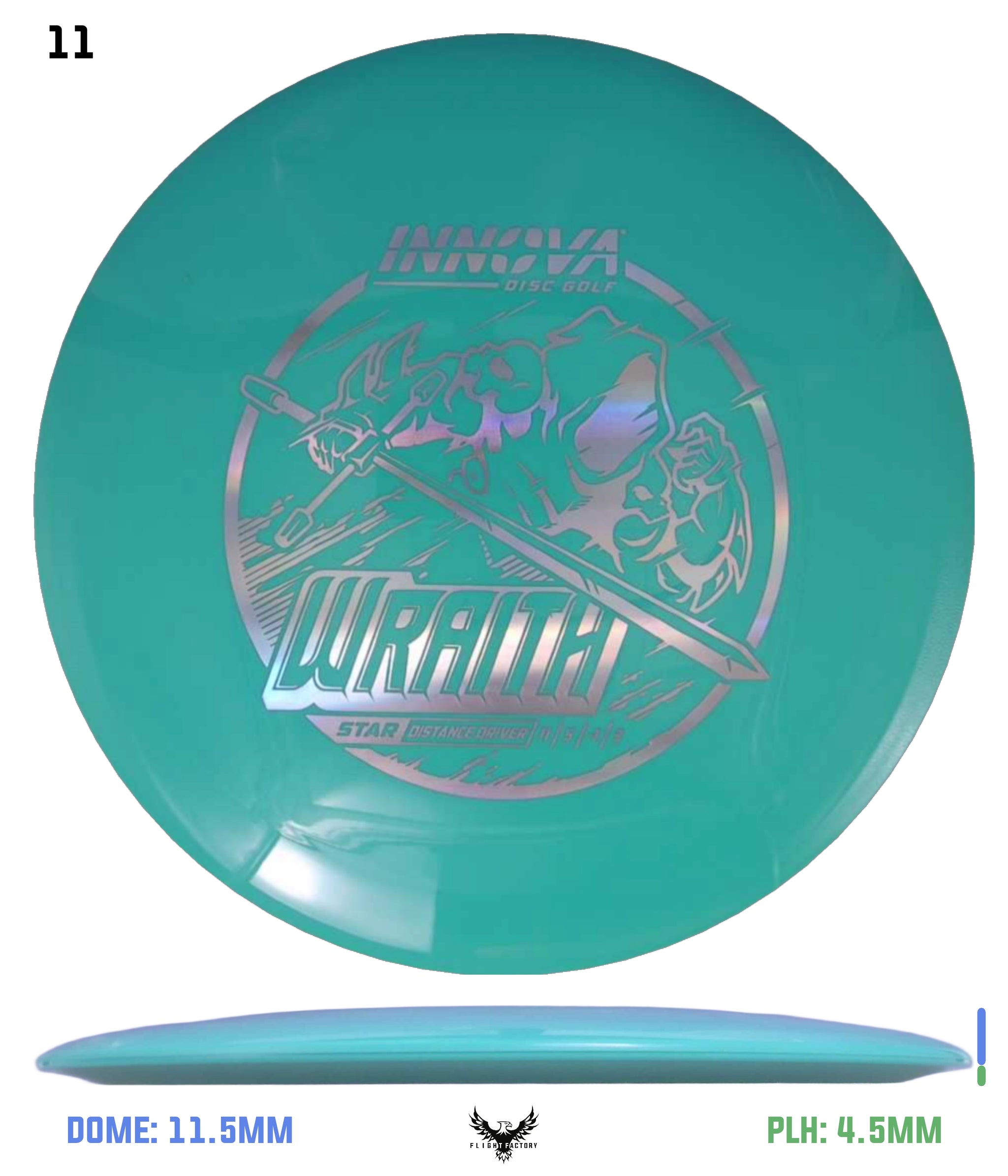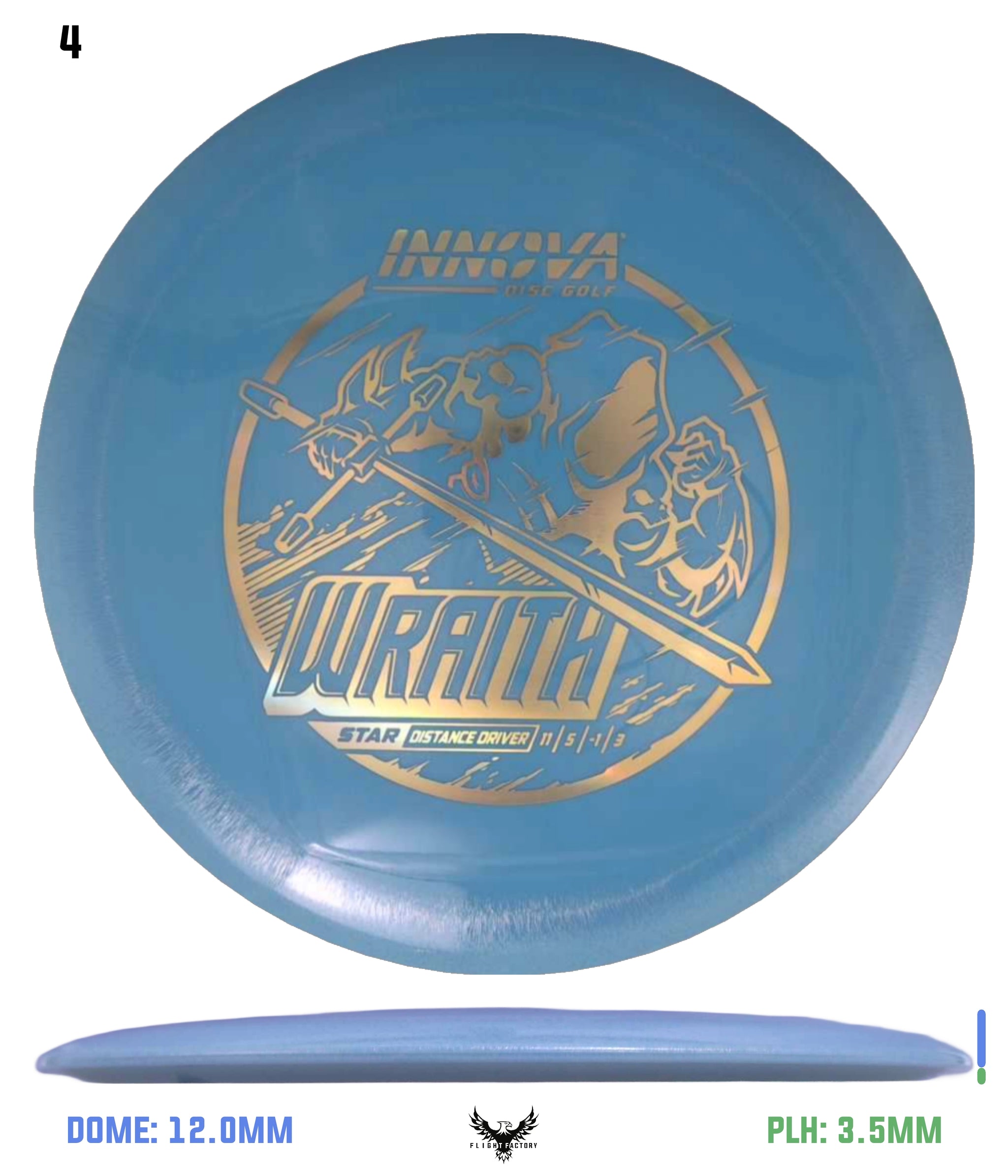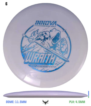 The Innova Wraith is a long stable distance driver with decent speed, exceptional glide, and precision accuracy. Players of many different skill levels can get great distance with the Wraith. The neutral stability of the Wraith allow it to be a valuable disc in all wind conditions. This driver works well for both forehand and backhand throws.