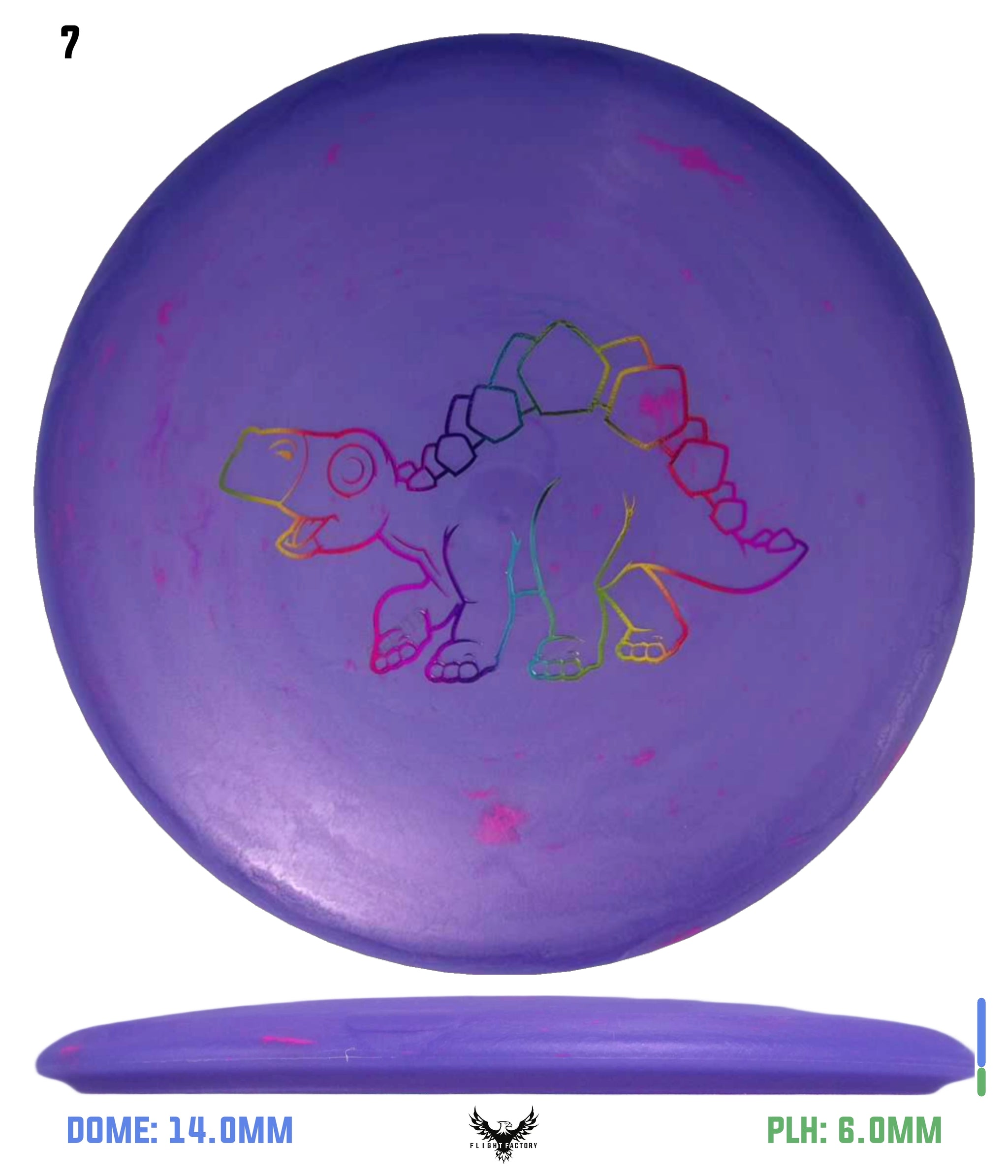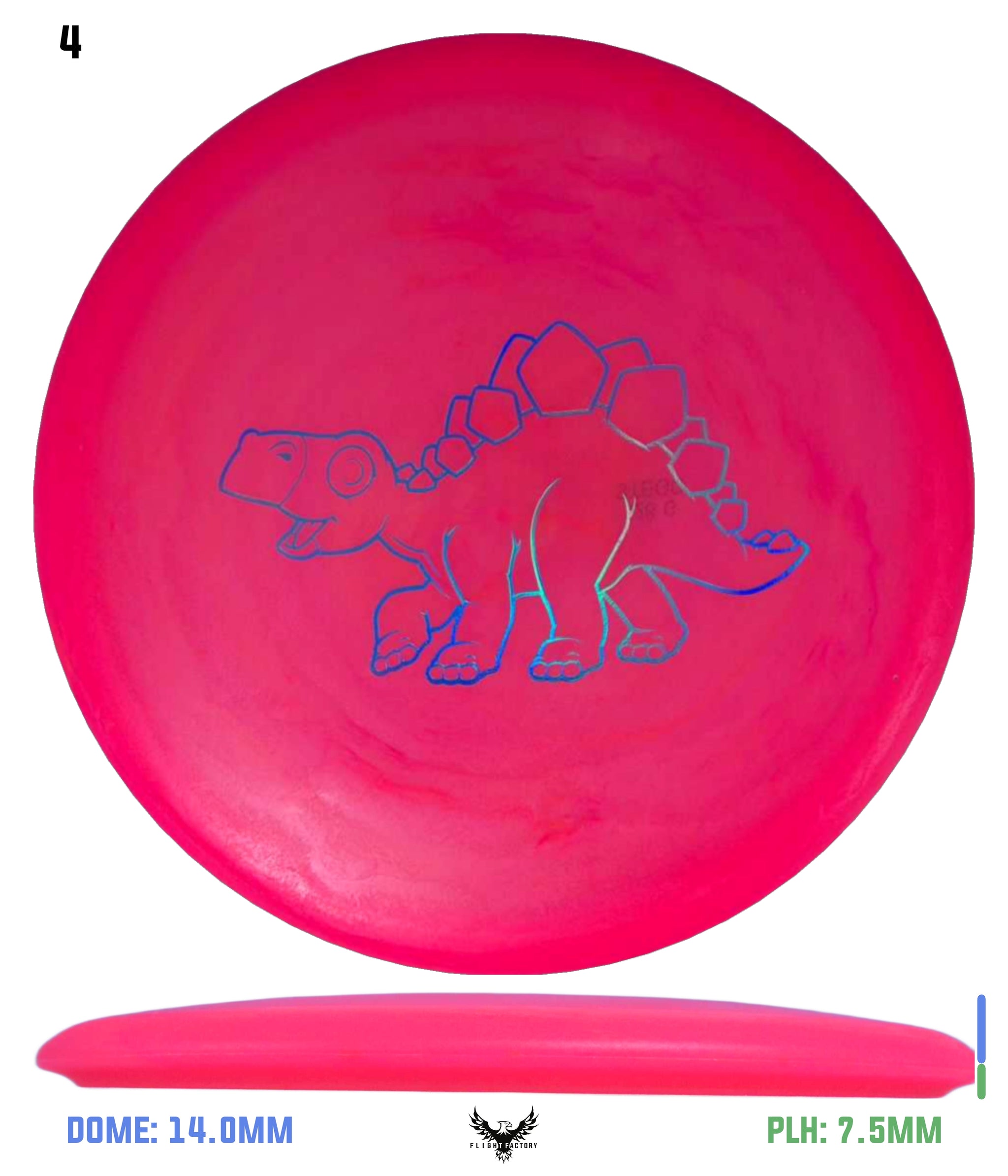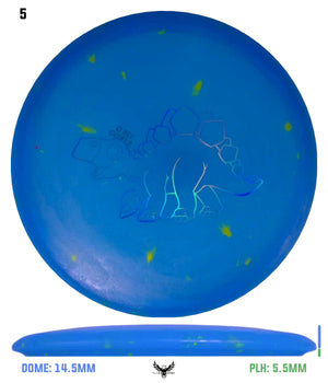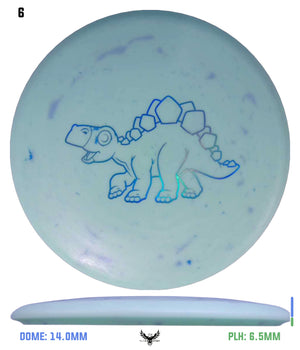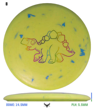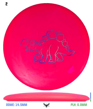 The Stegosaurus is the quintessential mid-range driver designed for some turn with a little bit of end-fade. Of course, in a lighter weight, it is more understable than the flight numbers might suggest. But for kids, this mid will do the trick in fading to the basket for a short putt. It has a somewhat deeper rim for more of a "frisbee" feel for new players.