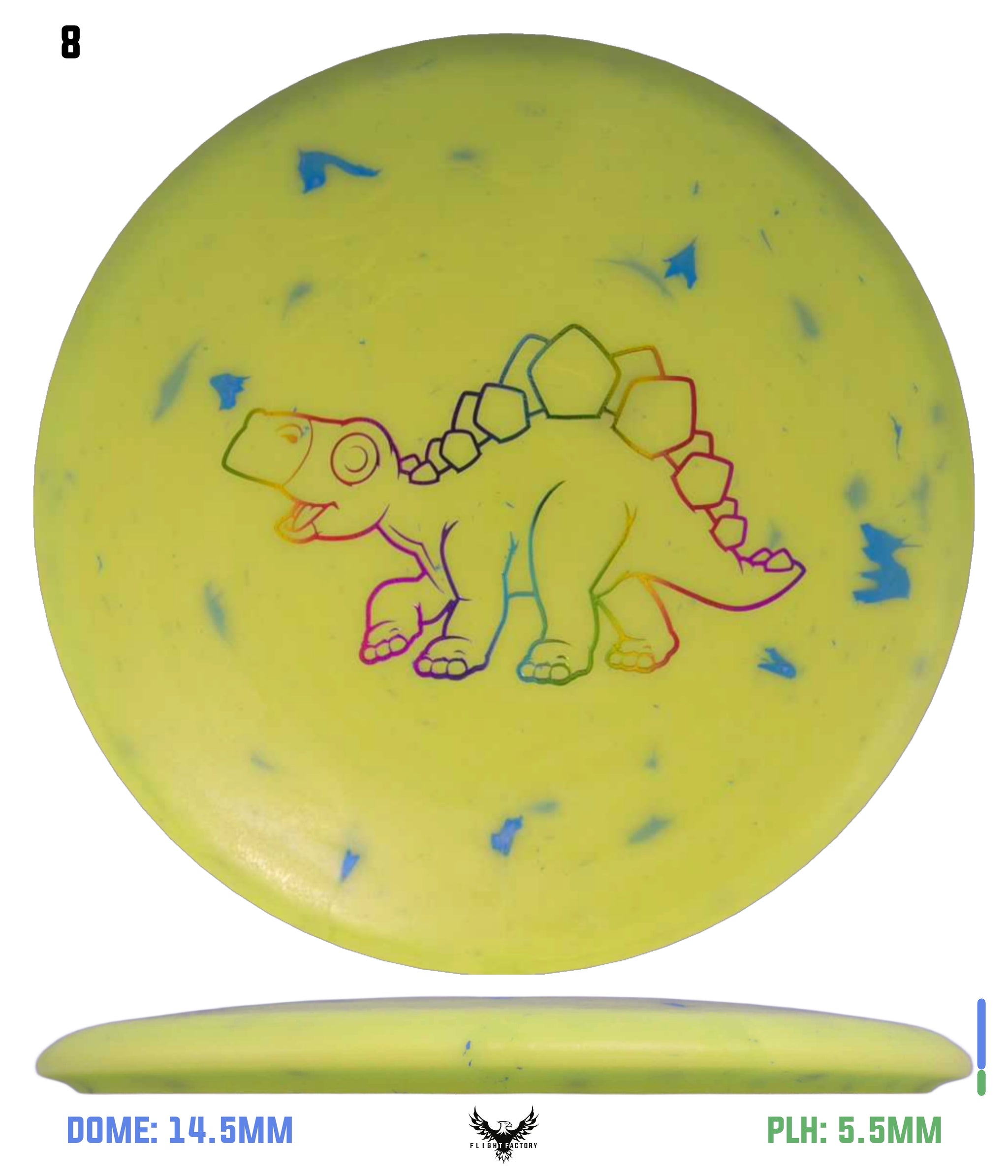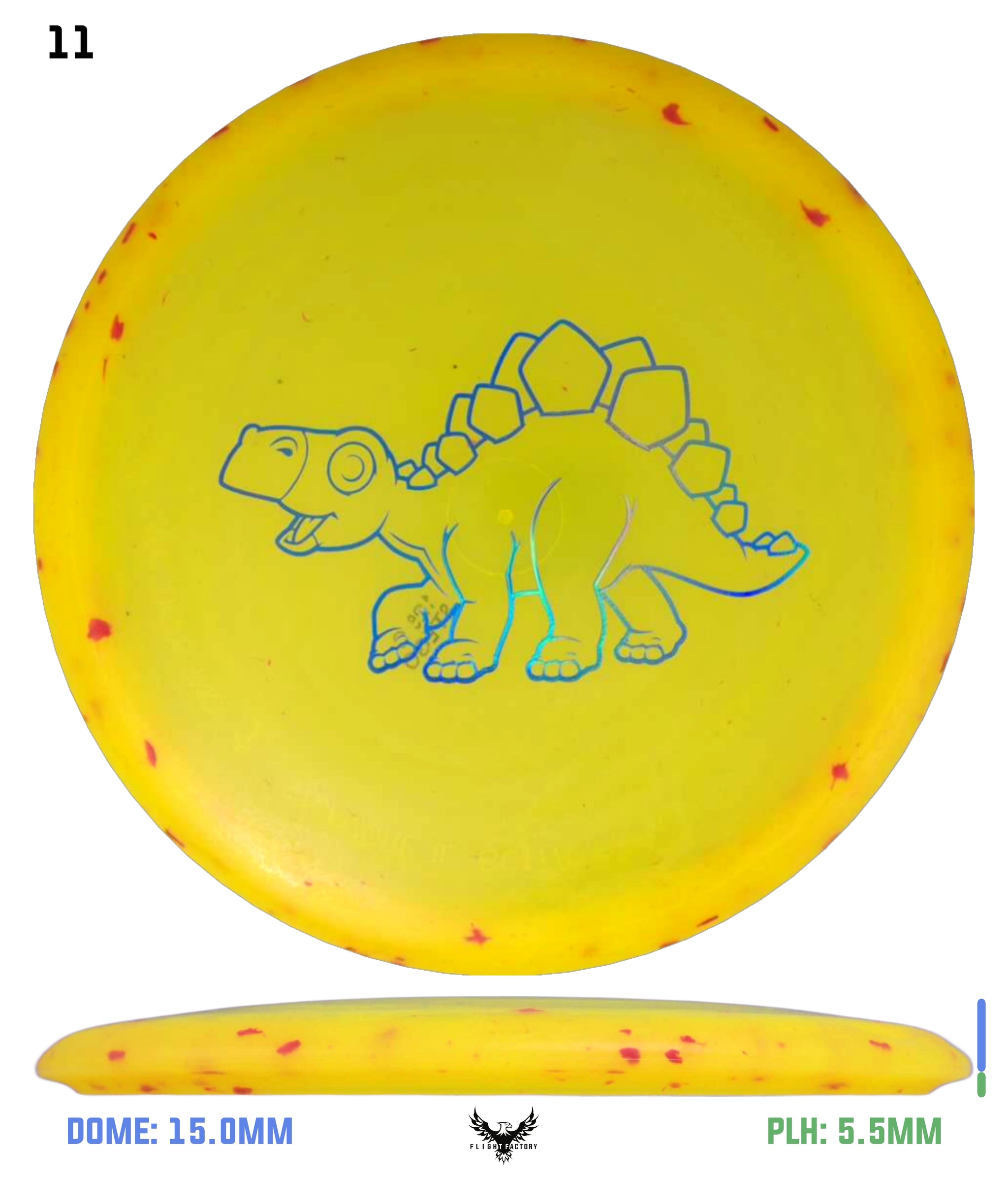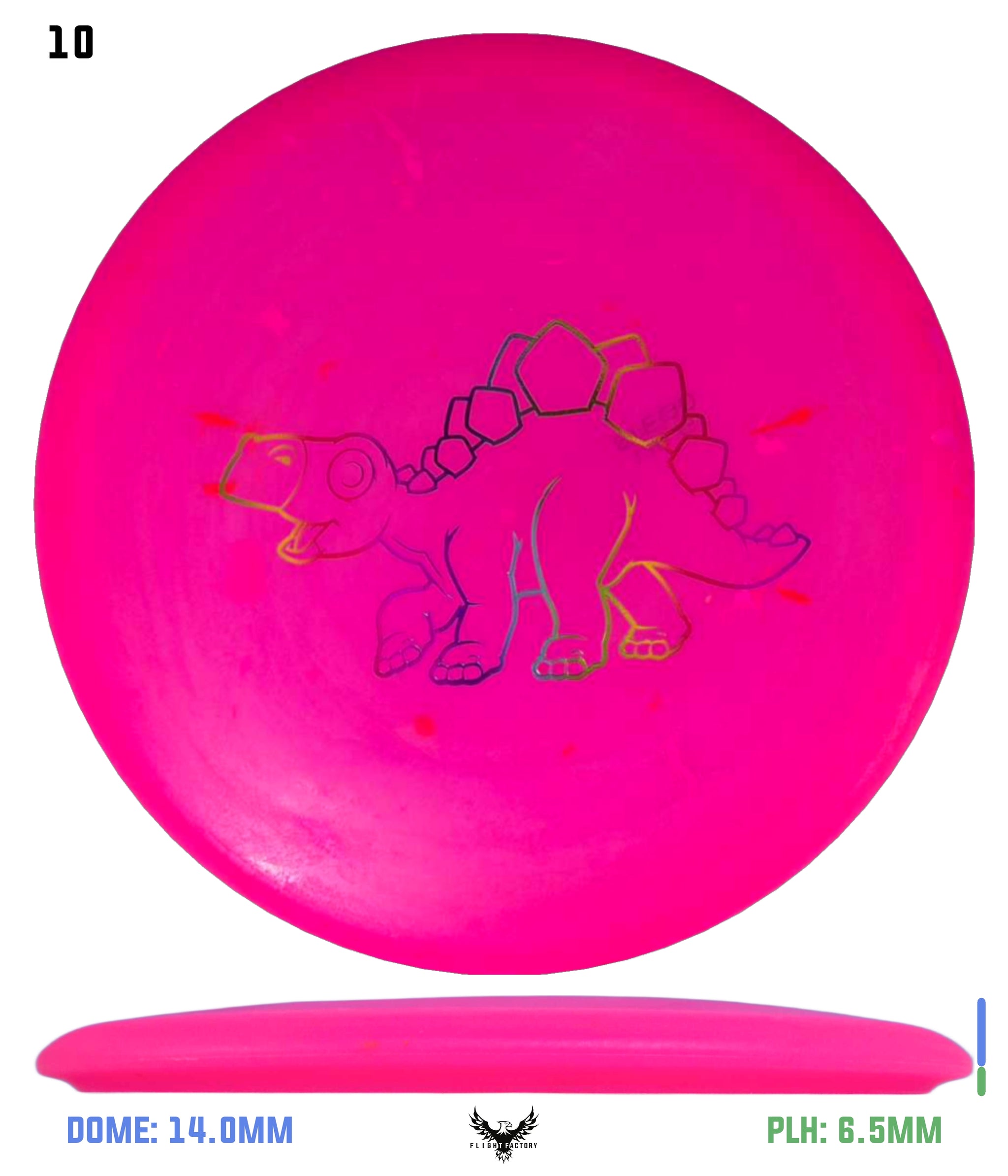 The Stegosaurus is the quintessential mid-range driver designed for some turn with a little bit of end-fade. Of course, in a lighter weight, it is more understable than the flight numbers might suggest. But for kids, this mid will do the trick in fading to the basket for a short putt. It has a somewhat deeper rim for more of a "frisbee" feel for new players.