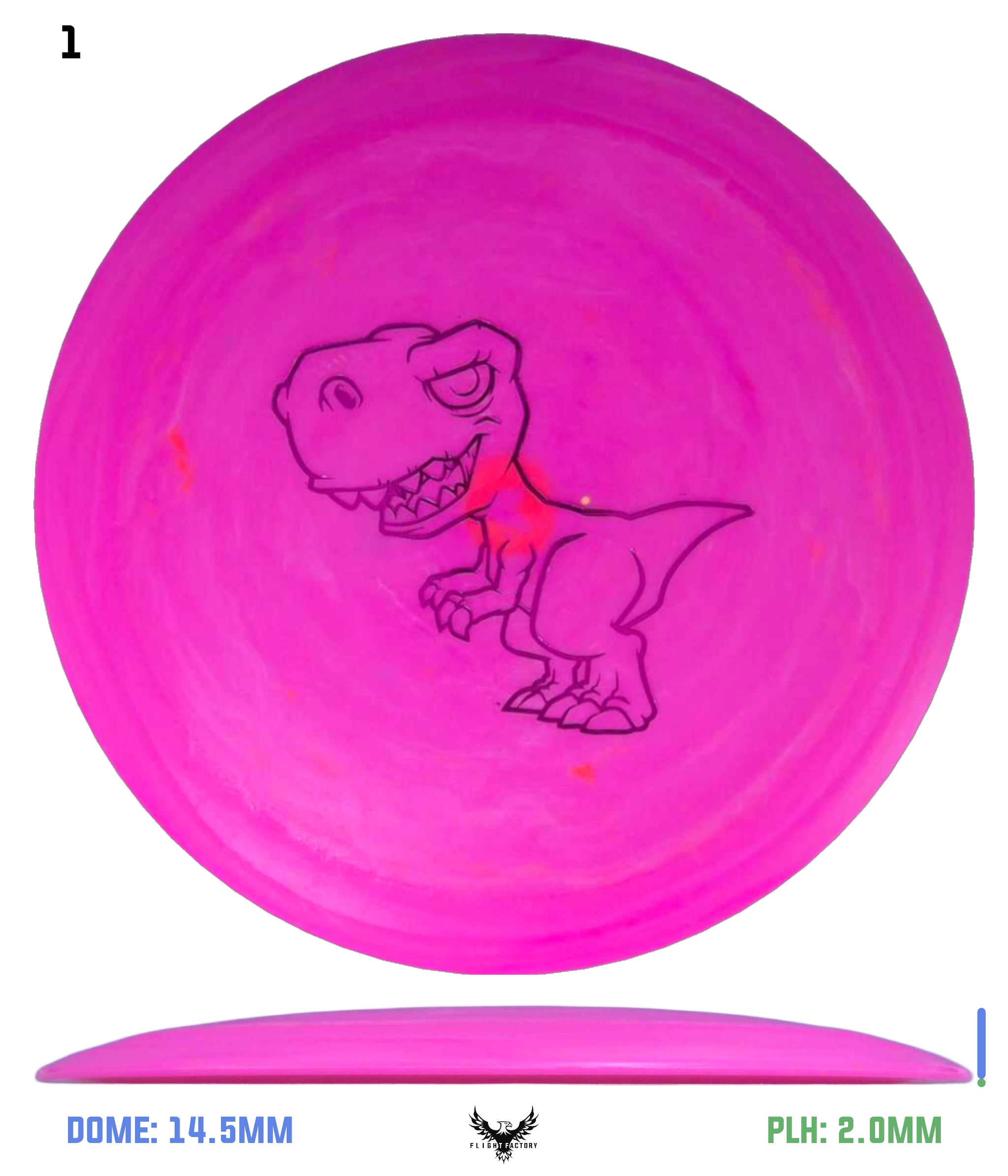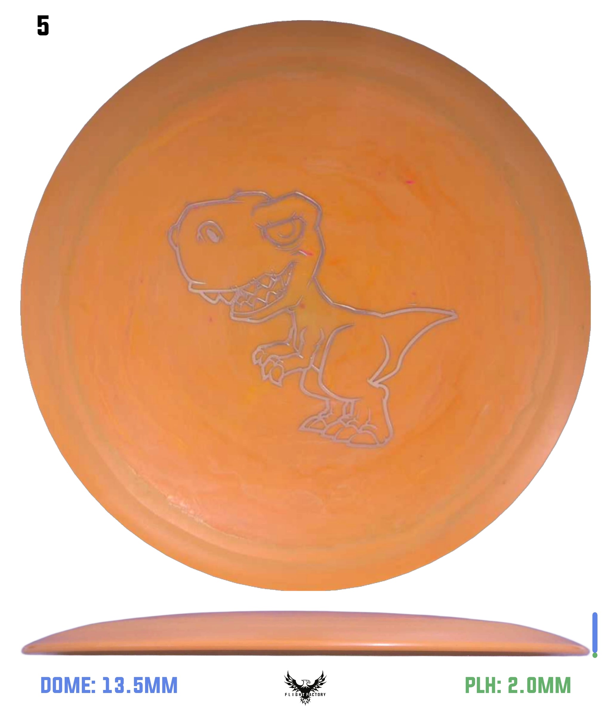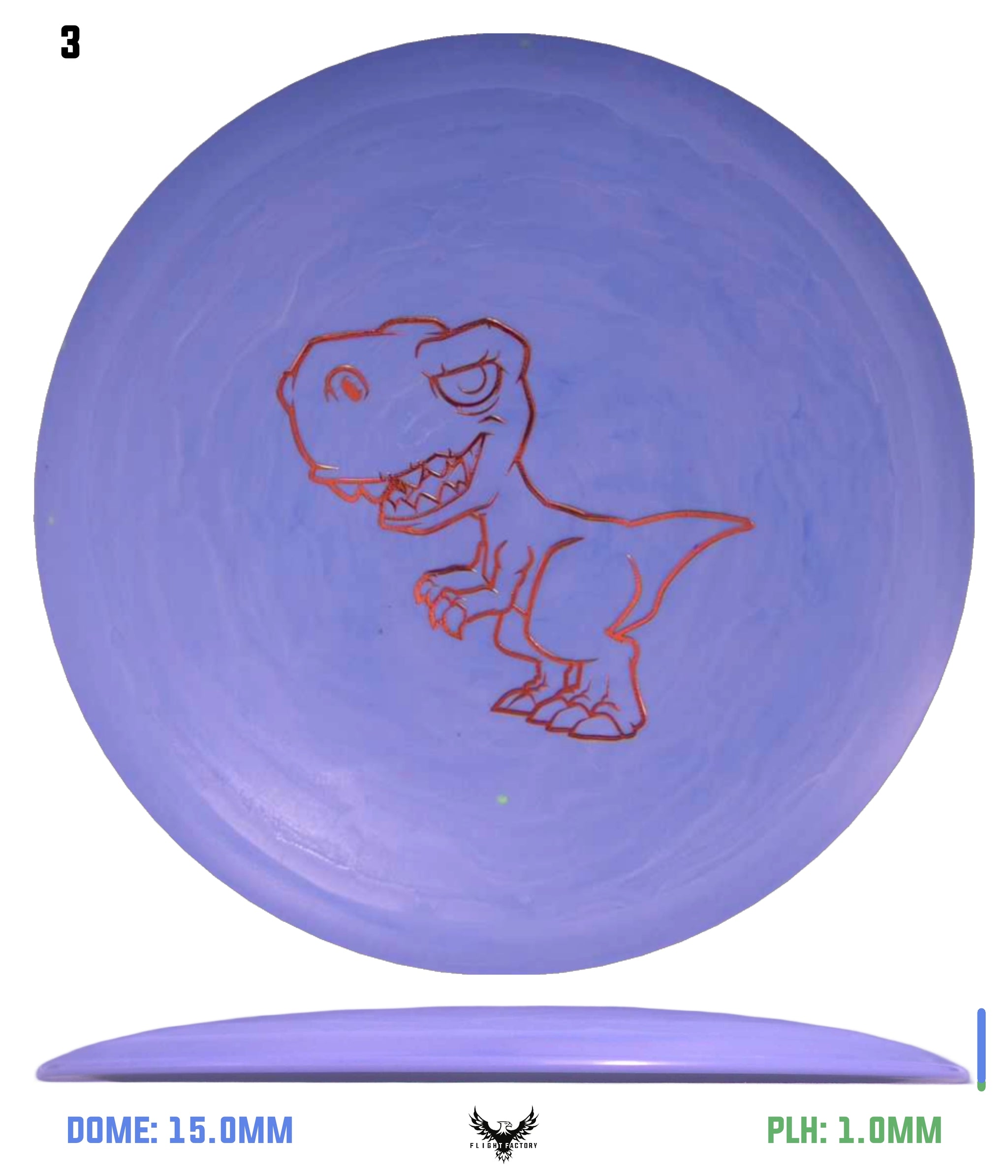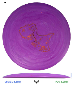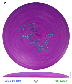 The Tyrannosaurus Rex was the king of the carnivorous dinosaurs, so it is only fitting that the disc should be the fastest, most advanced in the Dino Discs line-up. This is a maximum distance driver with a wide rim. So, even though it is very lightweight, it might be more difficult for very small children to get it up to speed. But once a player gets their technique figured out and they want to try to let loose a long bomb drive at maximum speed, this is the disc to unleash!