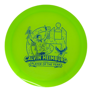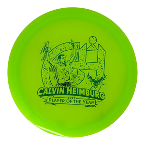 Calvin Heimburg put up one of the most consistent years we've ever seen in Disc Golf. This historic season earned Calvin the 2023 DGPT Player of the Year award. Support Calvin by picking up a commemorative stamp. Discs may vary slightly from pictures.