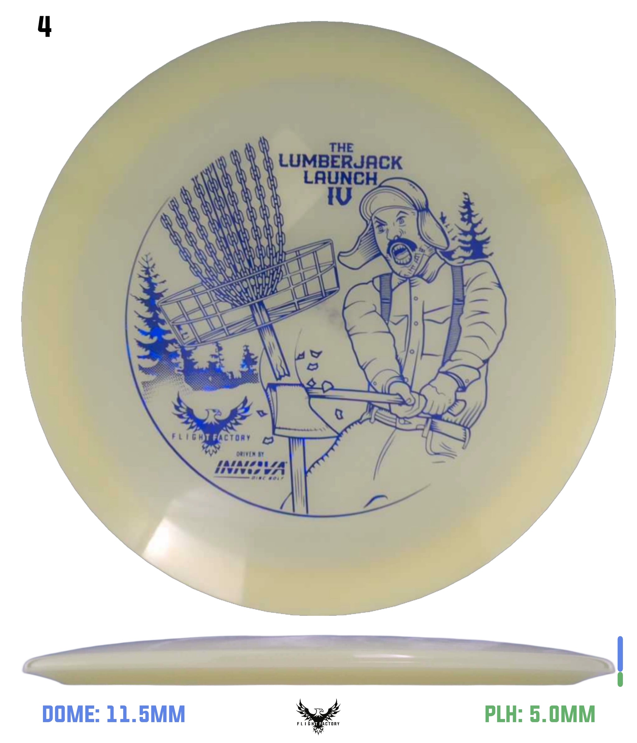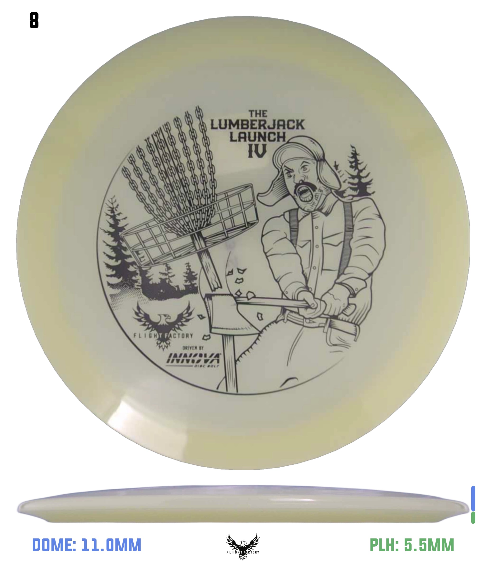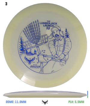 These Glow Champion Firebird were made to support the Lumberjack Launch 4 sponsored by Innova Champion Discs and presented by Flight Factory Discs.