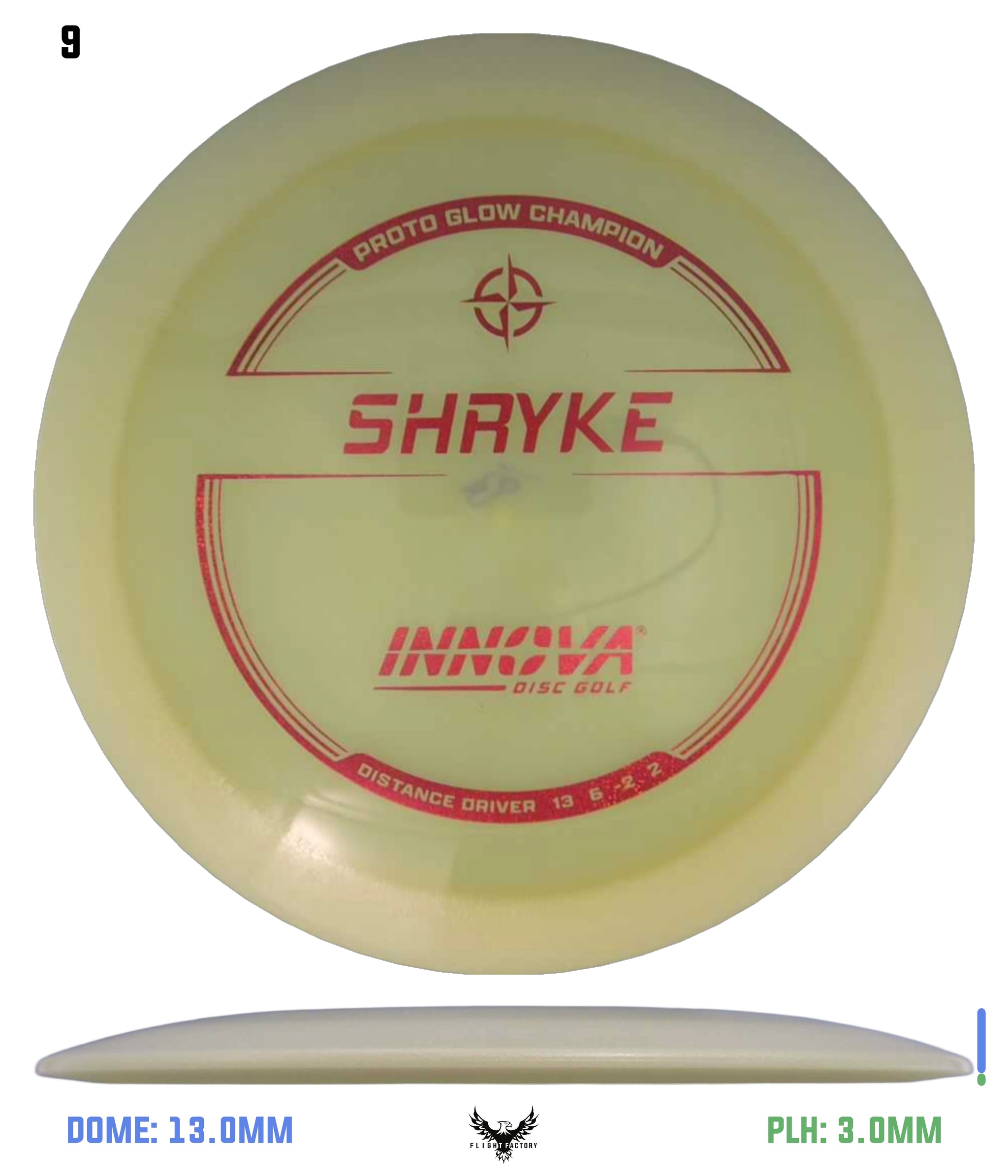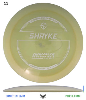 The Shryke is an easy to throw, very long-range driver for a wide variety of players. A mild high-speed turn puts the Shryke in glide mode, which along with its high aerodynamic speed, give it incredible distance. The low-speed fade is also mild, which makes it easy to keep on the fairway. The Shryke is similar to our popular Tern but faster and slightly more high-speed stable.