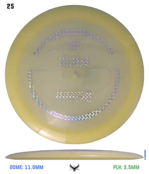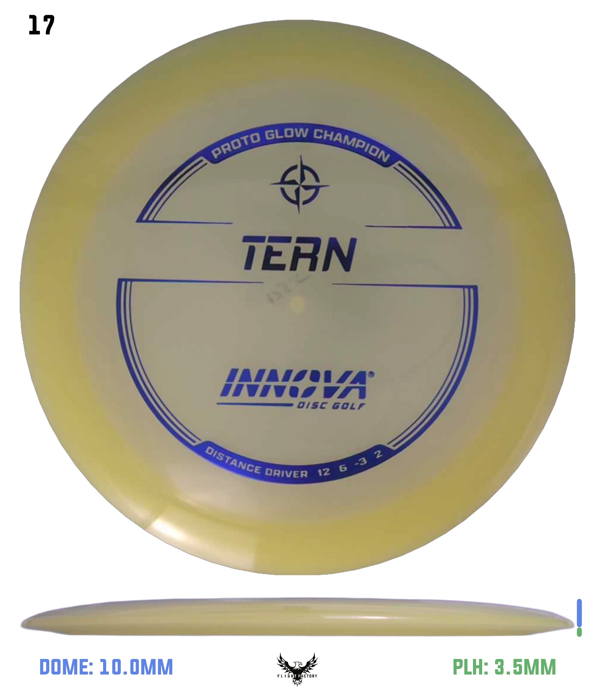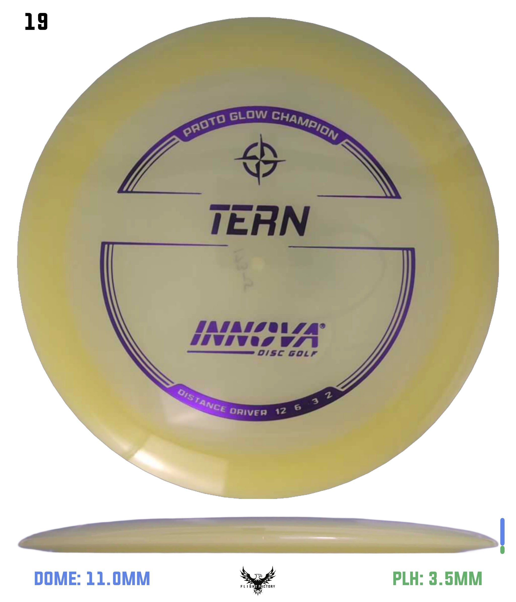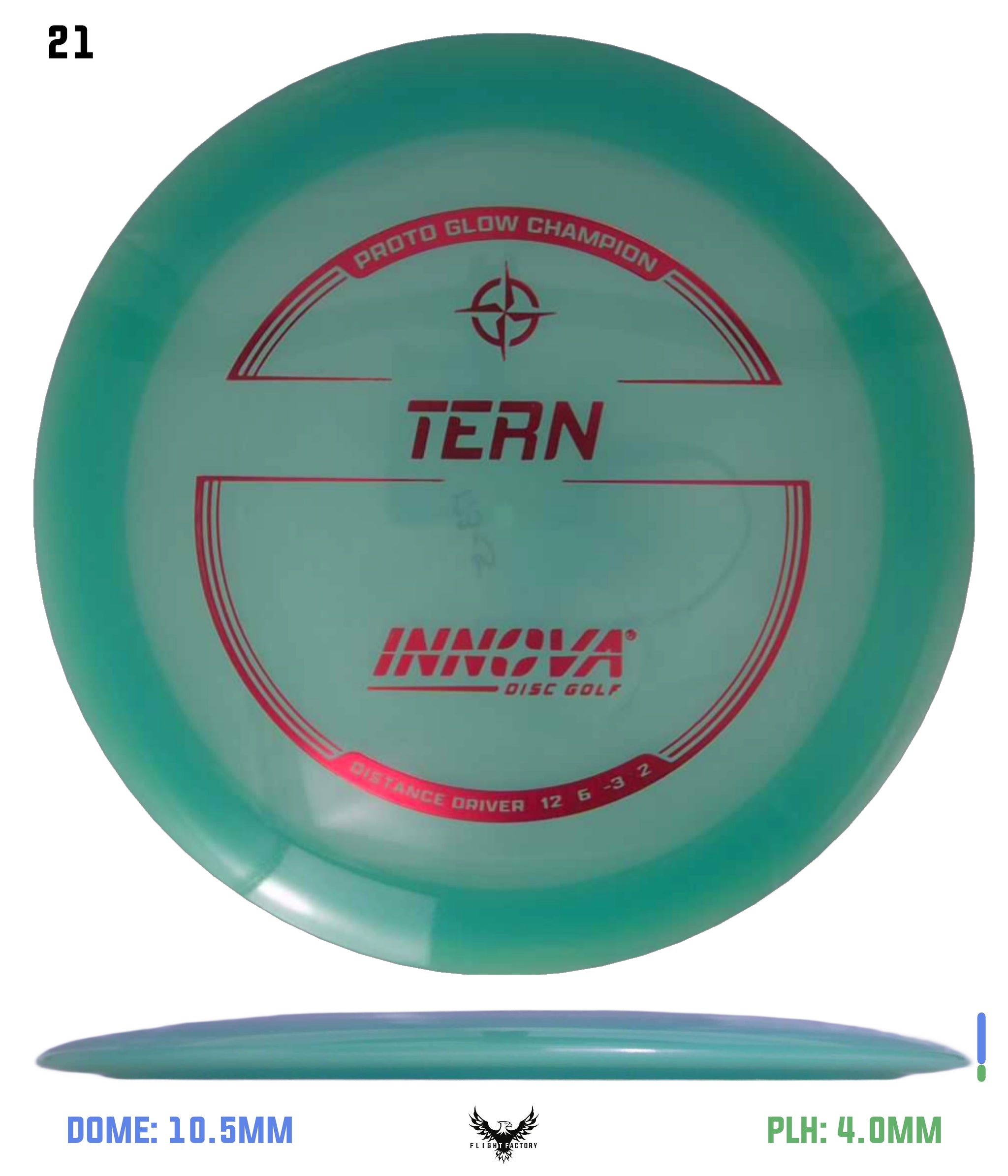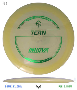 Like the name, this disc has natural turn. Similar to the Archon, the Tern is a fast slightly understable disc that is designed for long shot shaping throws. In the hands of a powerful player, it just may be one of the farthest flying discs due to the long glide and natural turn. The Champion and Glow Champion Tern flight numbers reflect a more stable flight.