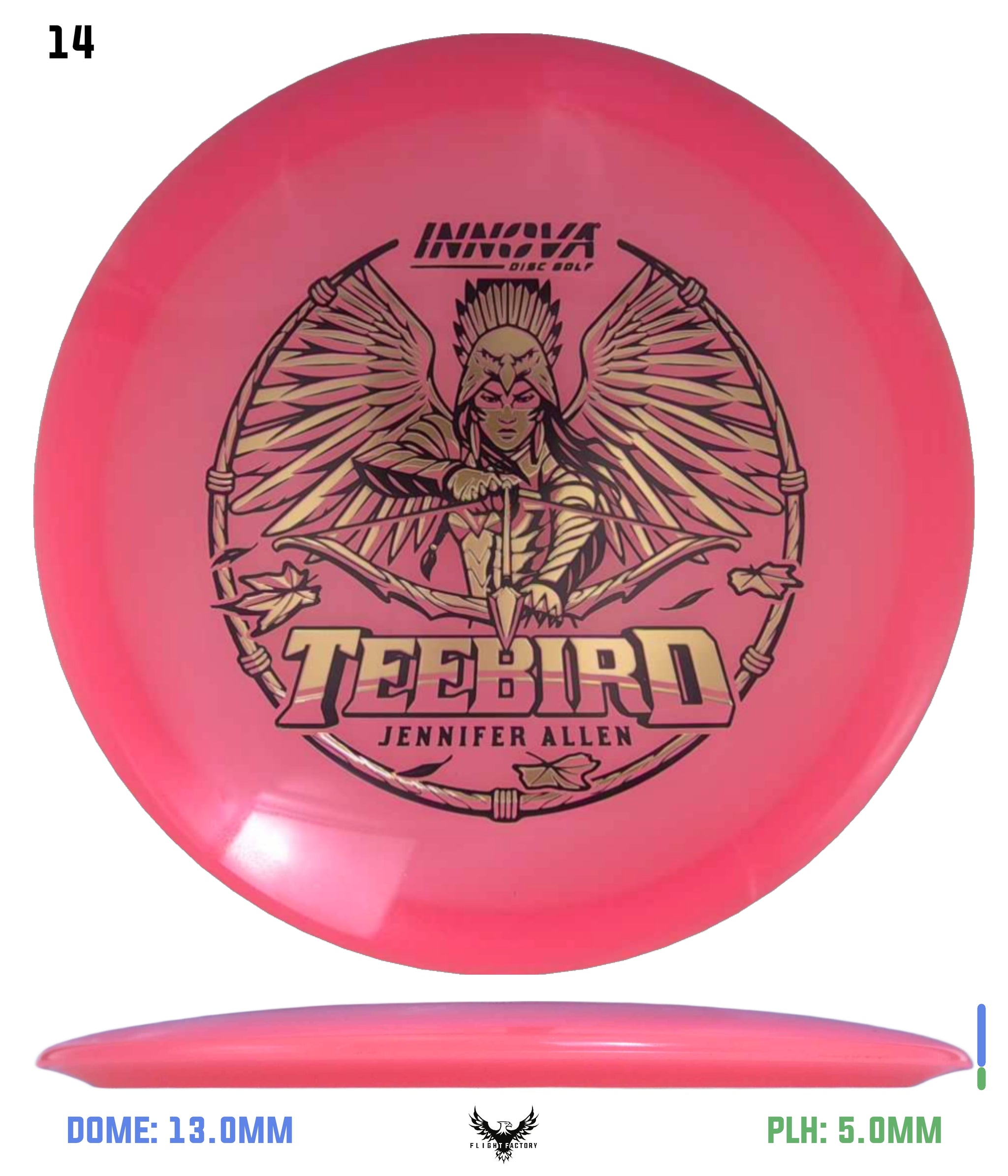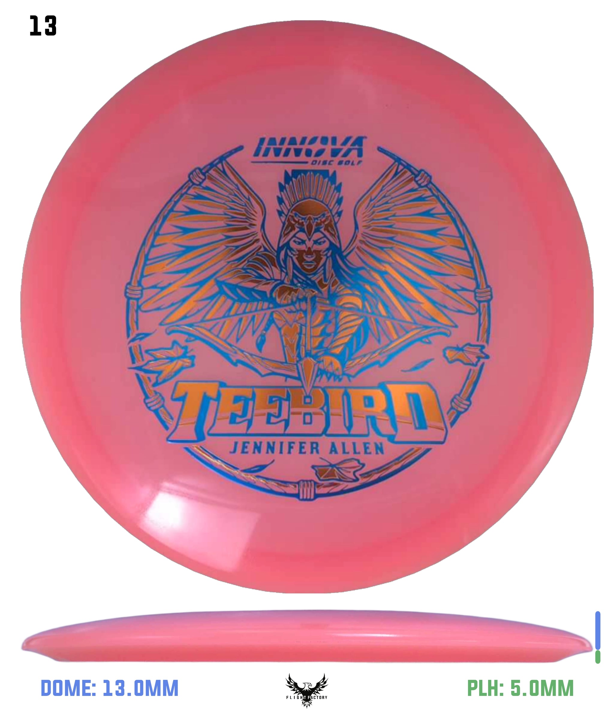 The TeeBird is one of our most accurate and reliable fairway drivers. It has a combination of straight flight, high glide and good speed that make it accurate and long flying both upwind and downwind. It is a popular choice for pros including 12-time World Champion and Hall-of-Famer Ken Climo.