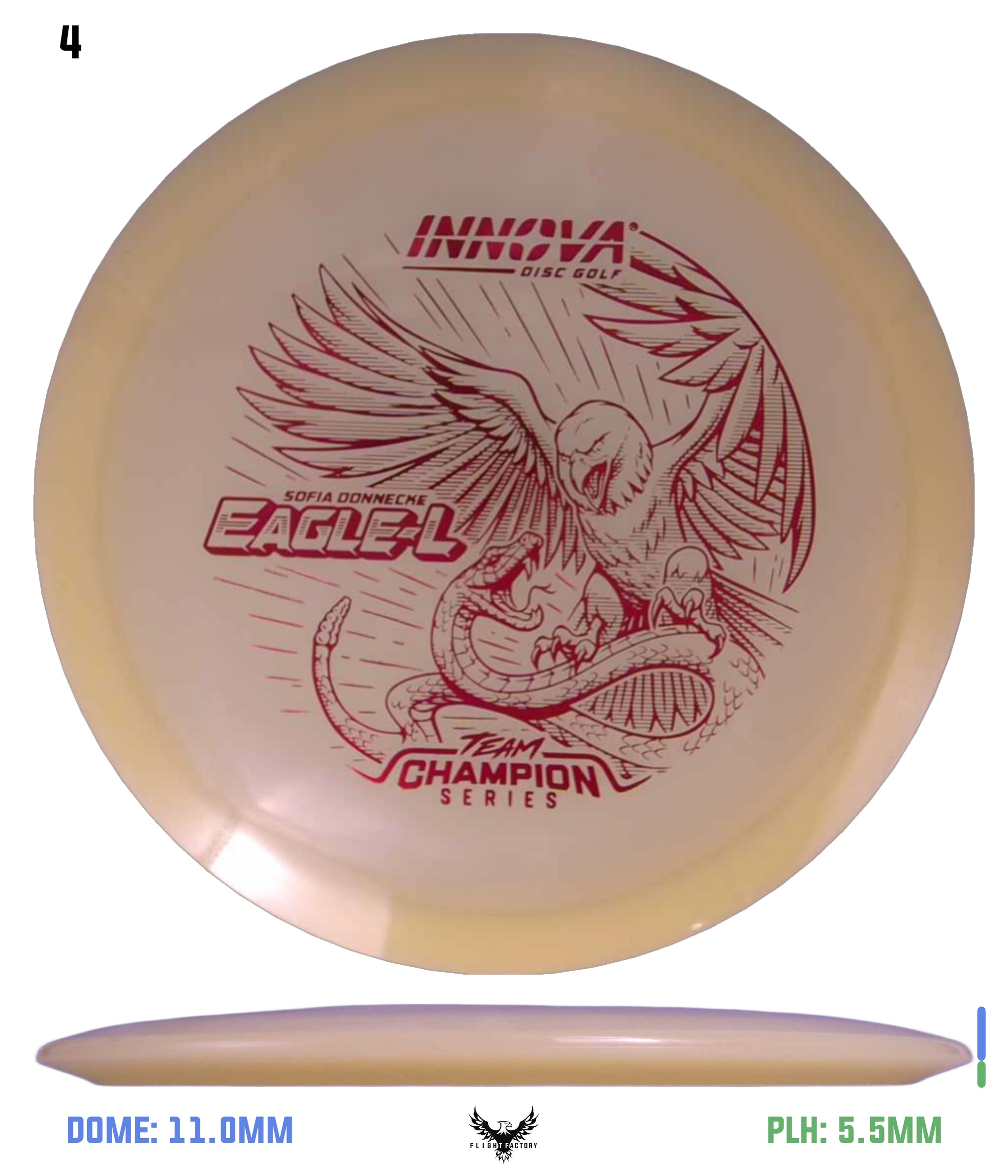 Meet the Innova Proto Glow Champion Eagle-L, a 2026 Tour Series disc legend tailored for players who prioritize precision over power. Built in collaboration with Sophia Donnecke, this Glow-ready Eagle-L mirrors her control-forward approach, translating her on-course habits into a disc that holds its line with unwavering reliability.