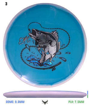 The Walleye stamp features a bold, dynamic illustration that captures the spirit of a predator striking with precision, perfectly matching the disc’s point-and-shoot flight. Finished with Orbit color contrast and Moonshine glow, this LE stands out in your bag and on the course.
