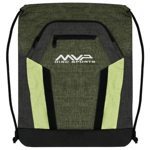 These lightweight drawstring bags are perfect for casual use, relaxed rounds, event spectating, travel, or as your daily carrier. Made from 300D Snow Canvas Polyester, these tri-color bags come in four color variations and feature 3 multi-size storage compartments, including a mid-size pocket that comfortably holds 4-6 discs, a fleece-lined phone pocket, and a deep insulated water bottle pocket. Protected by our limited lifetime warranty. When you need a more casual bag on the go, grab an MVP Drawstring Bag!