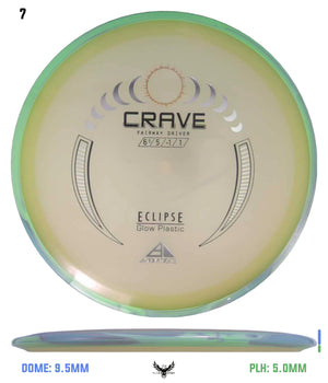 By far one of the most requested discs by GYROnauts around the world, the EclipseCrave has officially returned as a stock release! Maintaining the smooth hand feel, and straight, controllable flight that the Crave is known for, the Eclipse Crave is here to give your bag a glow up. High power players will continue to find the Crave to be an incredibly workable disc, perfect for nearly any shot shape, and lower power players will get a nice straight to slightly understable flight with a forward pushing fade. Whether you’re carving lines in the daylight or cruising through the course during an evening round, reach for the Eclipse Crave when you need a dependable, trustworthy fairway driver!
