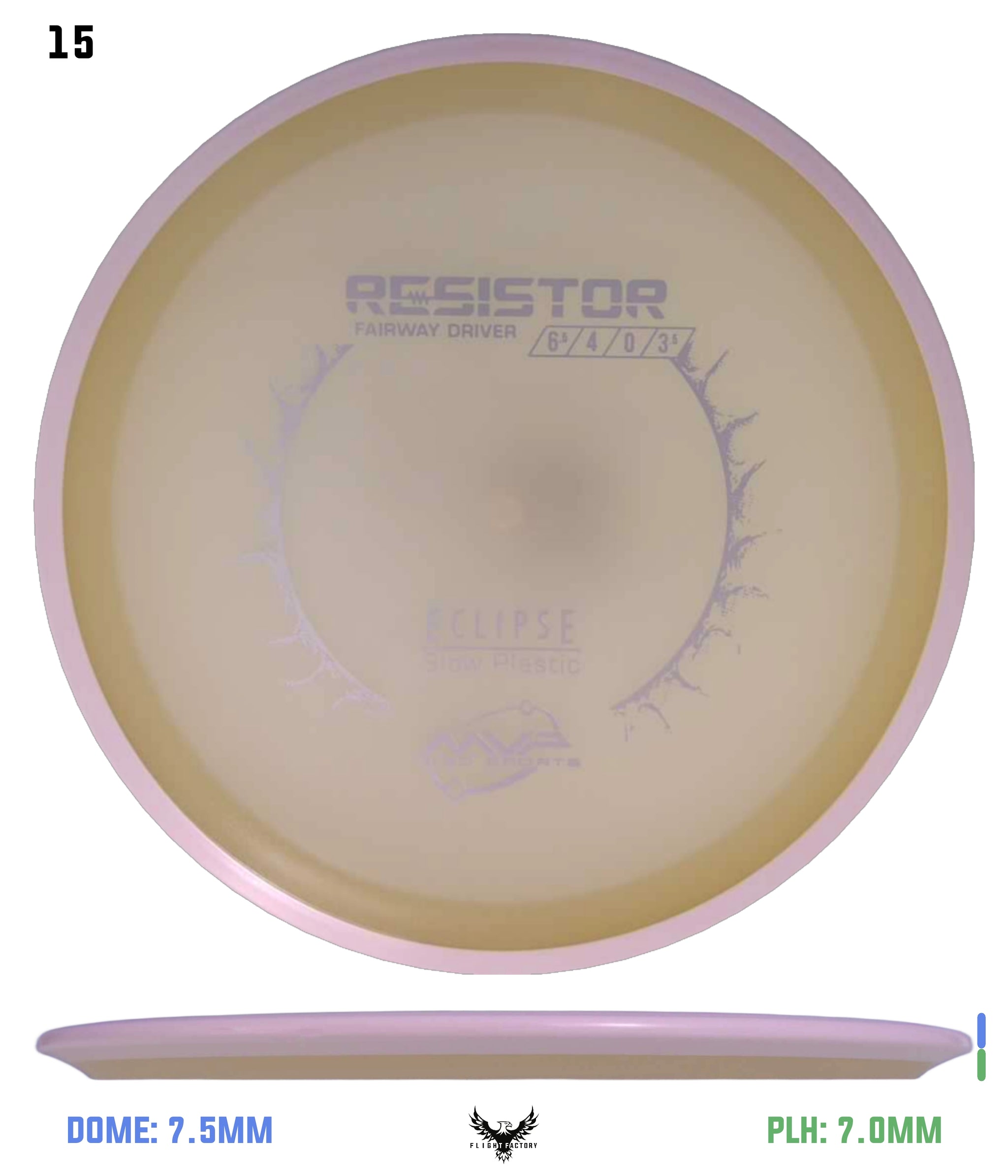 The MVP Resistor is described as a slower overstable fairway drive with more controllable speed. The Resistor has a flat profile that makes it excellent for forehand flick and overhand shots. The Resistor compliments the MVP line of control drivers by providing a more overstable driver than the Shock. Utilizing MVP's GYRO technology, the Resistor will "resist" turn and experience a strong reliable fade. MVP says, "this disc executes accuracy and rangeability like a dream."