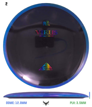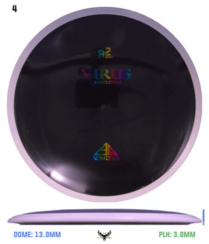 Known for its control, glide, and just the right amount of turn — the Virus has everything you want from an understable driver. High power players will love the Virus for the variety of lines they can get from it — hyzer-flip tunnel shots, sweeping anhyzers, booming tailwind drives, and even rollers are easily attainable with the Virus. Lower power players will find the Virus to be an ideal control driver, with its glide and turn to allow for workable flights even at the lowest end of the power scale. Control your game with the Virus!