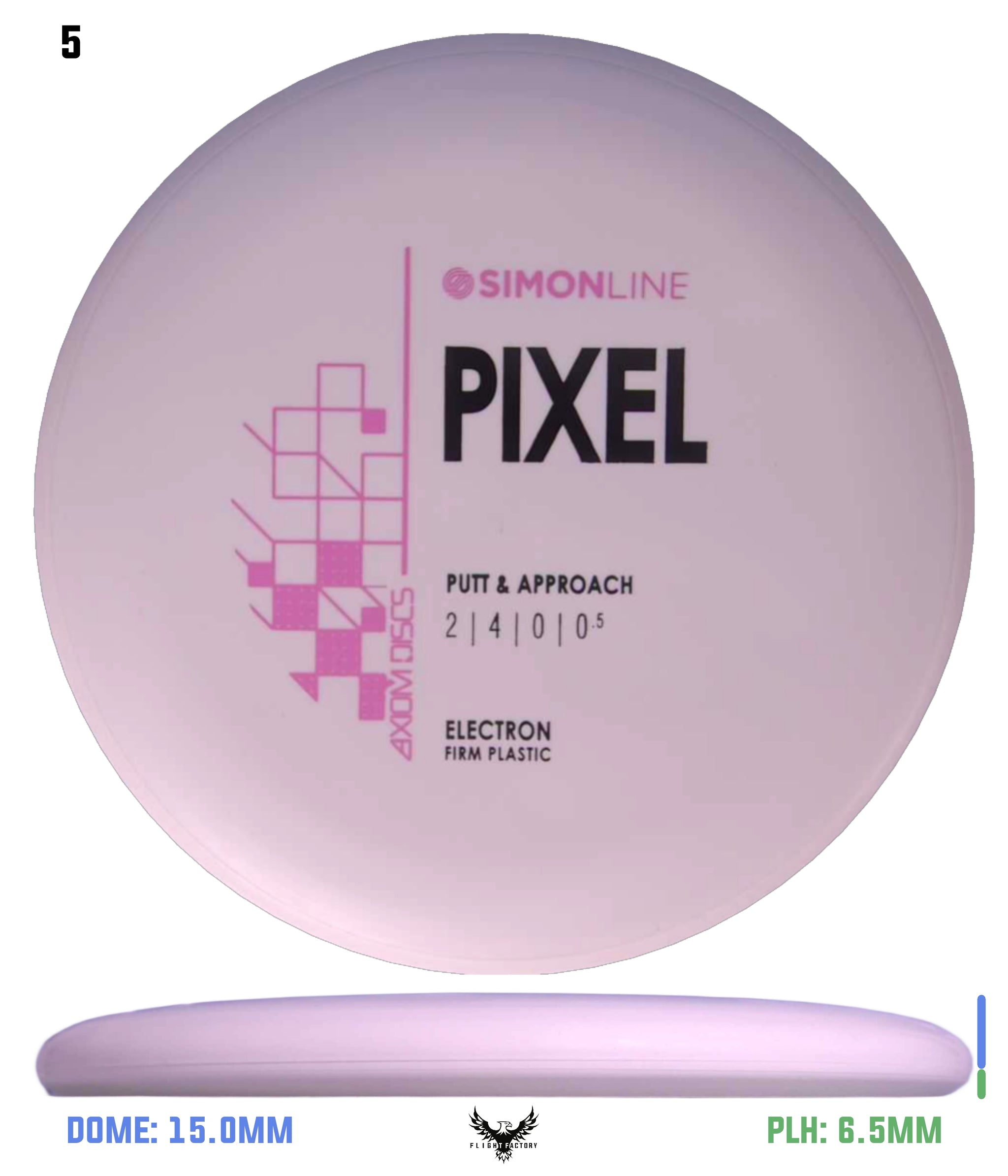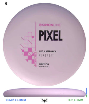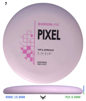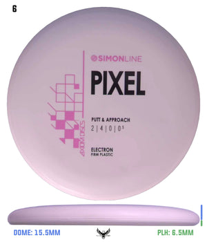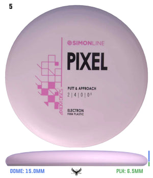 The second disc in the Simon Line is officially here, the Electron Firm Pixel! Debuting with flight numbers of 2 | 4 | 0 | 0.5, the Pixel has a deep profile with a small micro bead, perfect for getting that full grip feeling. Off the tee, the Pixel is a straight/stable flier and will reliably hold any line it’s thrown on with a minimal amount of fade back. However, don’t let the low-speed fool you - the Pixel can certainly go the distance, especially with the right wind conditions. On the putting green, whether you’re in C1 or C2, the Pixel shines with the right amount of glide to carry right into the chains.
