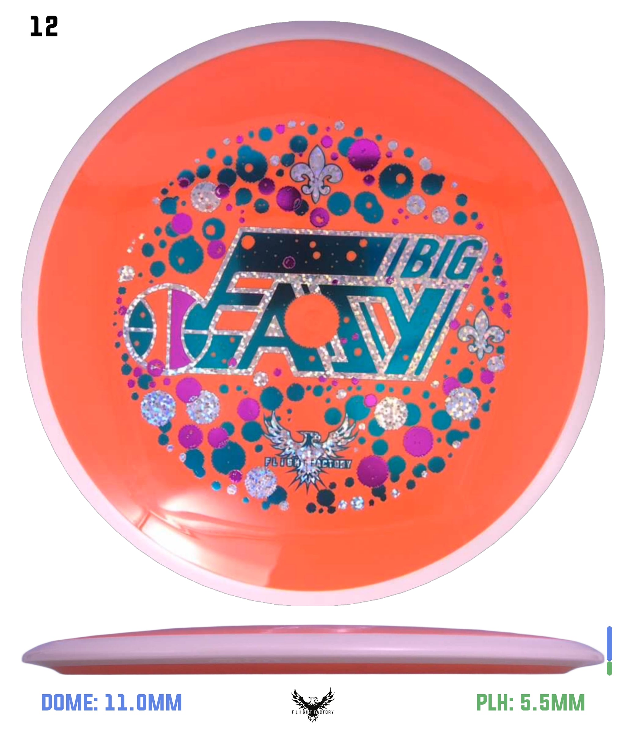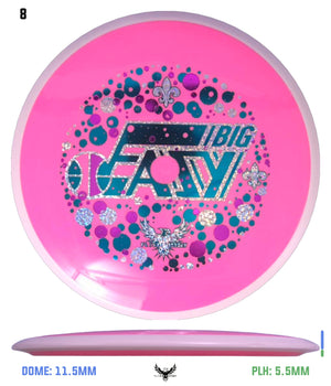 The Amp’s defining flight characteristics include a controllable turn and minimal fade. Average throwers will get straight stable lines with a subtle fade. High power throwers will achieve more neutral lines with more turn and less fade. The Amp’s controlled turn allows power throwers to get a larger turnover phase than the Volt, along with reduced fade for distant placement shots that desire it. With its controlled turn and fade, players can choose the Amp for more distant placement shots.