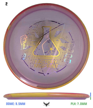 Lab Seconds, Factory Seconds or X-Outs are discs that may have slight cosmetic flaws from the factory. These minor flaws do not affect the flight of the disc. These flaws may include stamp dropouts, mis-stamps, etc.