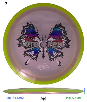 Float like a butterfly before stinging the basket with this understable 9-speed distance driver, the OTB Open Prism Proton (Soft) Insanity illustrated by Marm O. Set!