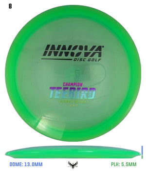 Innova Champion plastic is a transparent ultra durable hi-tech plastic that provides outstanding performance and long life. Discs in Champion Line plastic maintain their flight characteristics 5X longer than do DX discs.