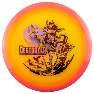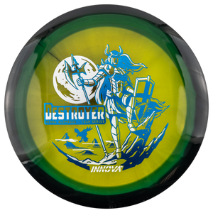 The Destroyer is a very fast stable long-distance driver. This disc is much like a faster Wraith, but with a little more high and low speed stability. Great disc for sidearm throwers and those with lots of power. Can handle headwinds and throws with off axis torque. Not suggested for beginning players.