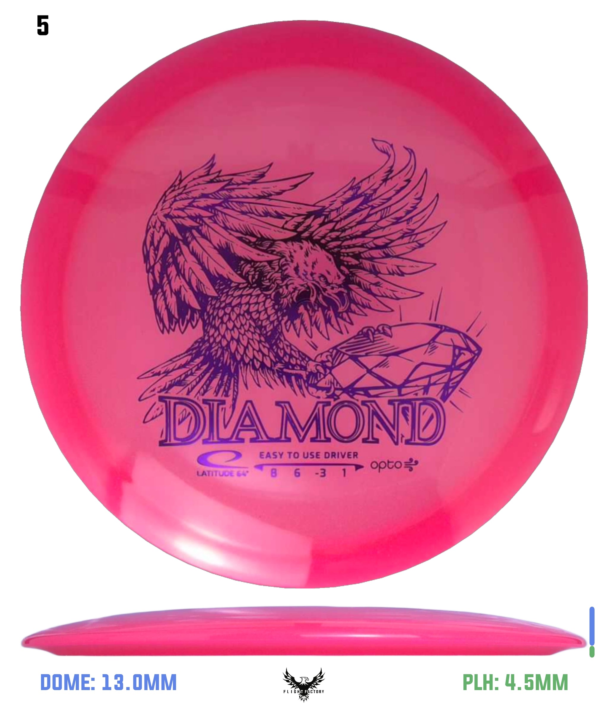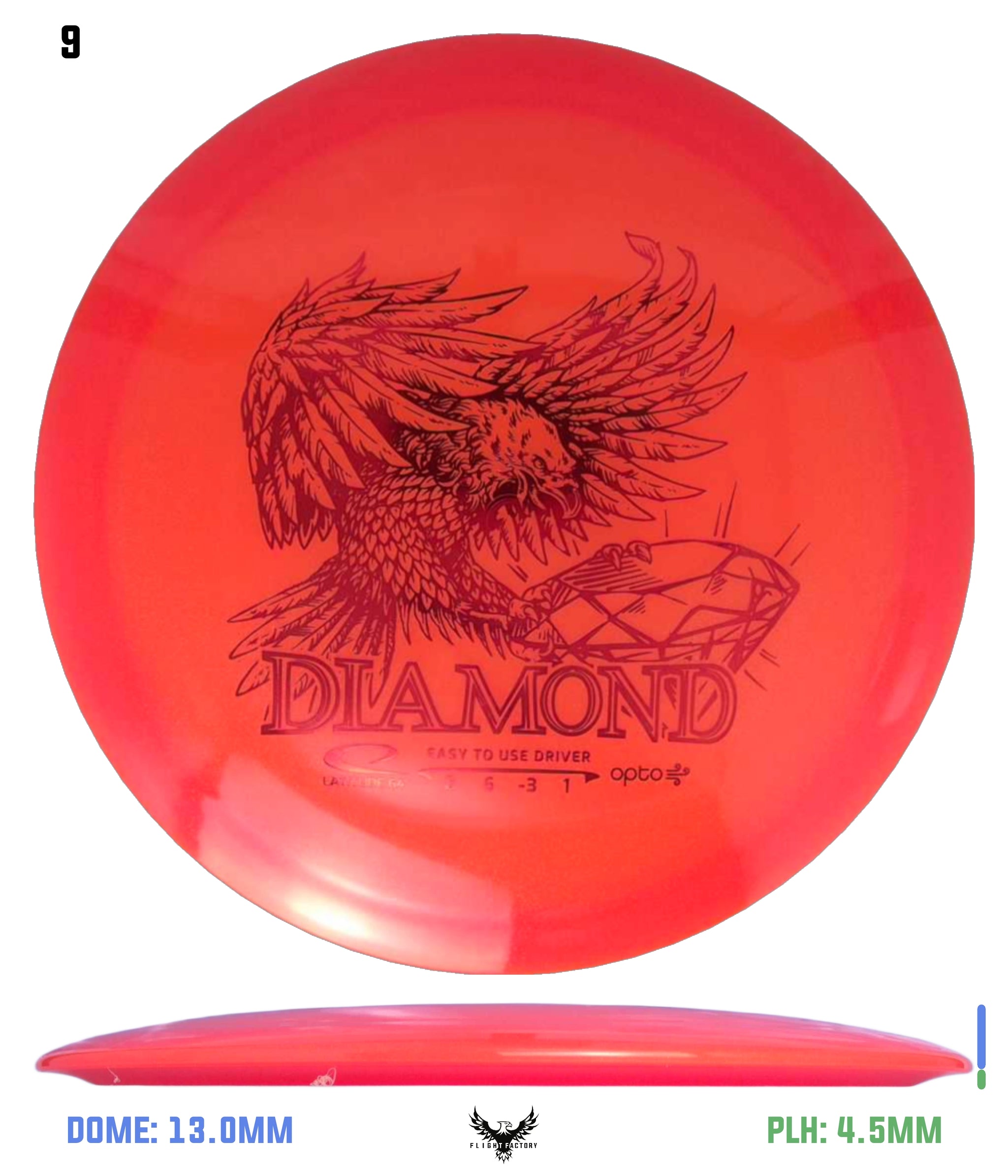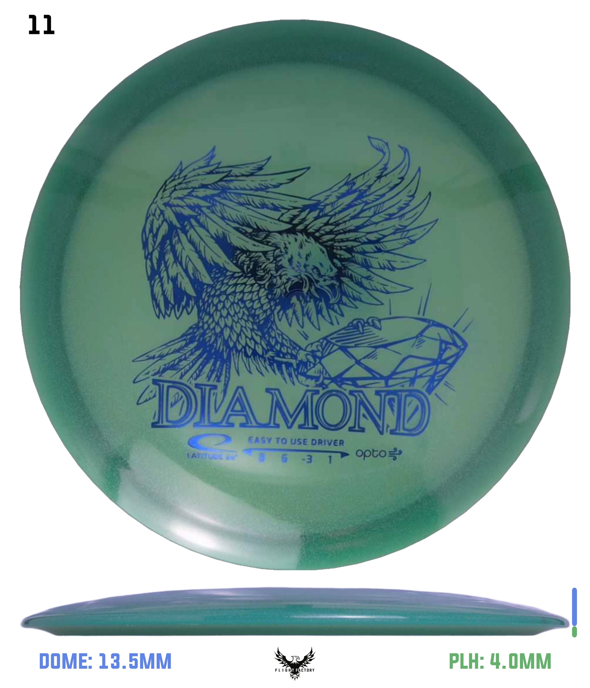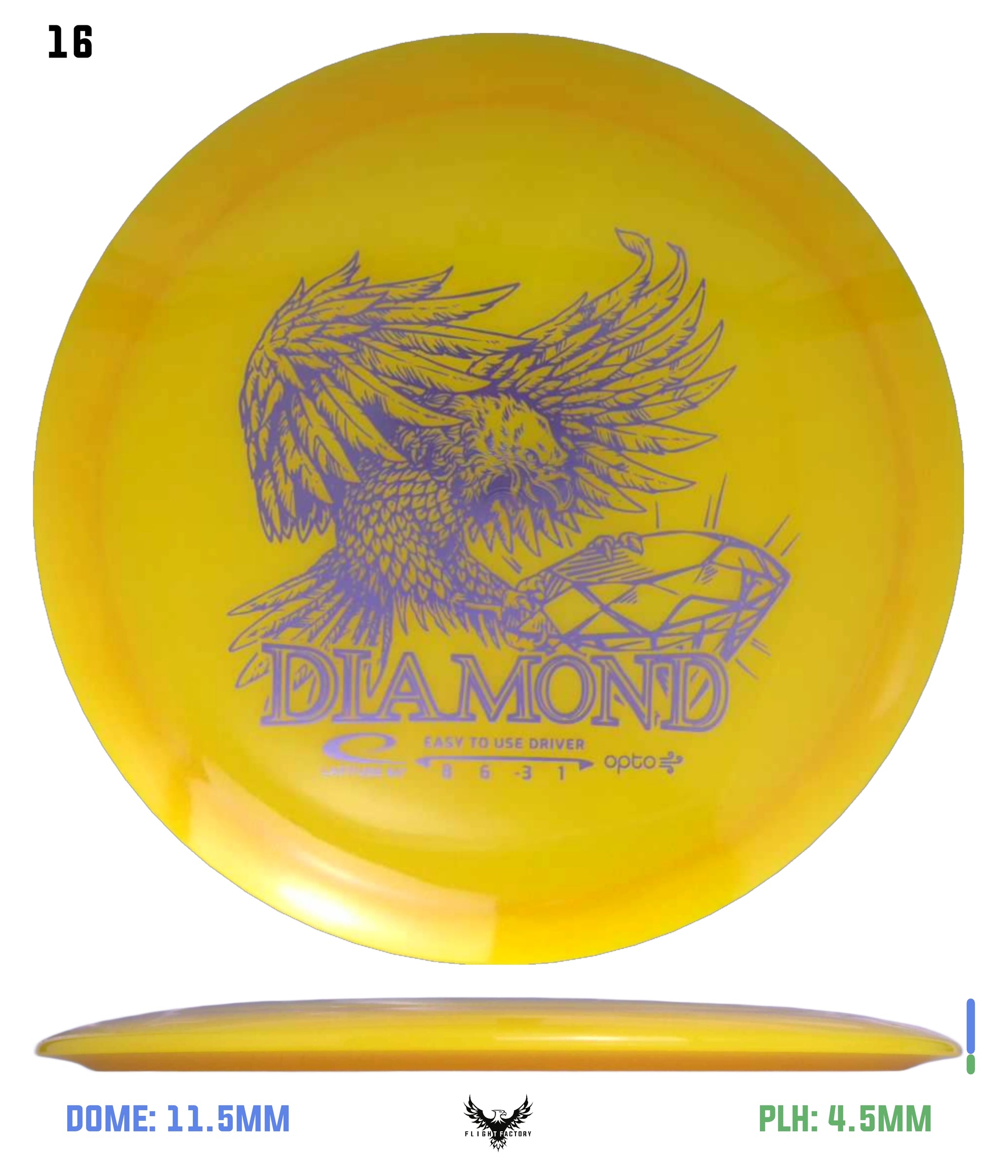 Diamond is the choice of disc for beginners, children and players with moderate arm speed. It is only produced in weights between 145g-159g, which makes it easy to throw and control. It has an understable flight path with good glide and slight fade.